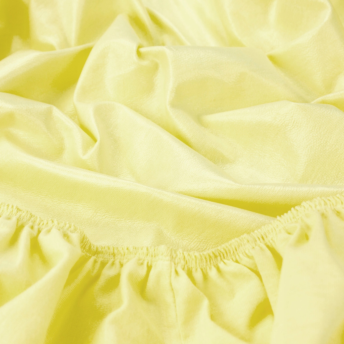 Крупный план качества переплетения двух слоев: трикотажного слоя (верхняя сторона листа) и полиуретановой мембраны (нижняя сторона листа). Простыня имеет резинку по всей окружности, которая фиксирует матрас и удерживает простыню на одном месте.
