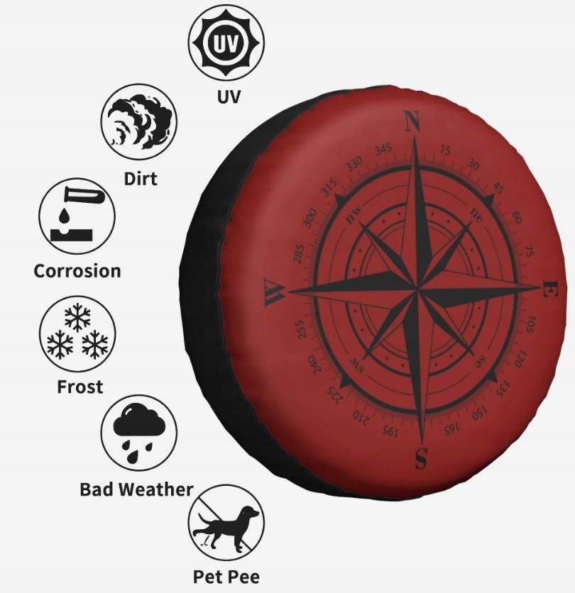 Сильная водонепроницаемая ткань в сочетании с сопротивлением пыли и воде, защитой от солнца и коррозии, значительно улучшает внешний вид транспортного средства и поддерживает чистоту запасного шин. Инструкции по стирке: рекомендуется вытереть влажной тканью