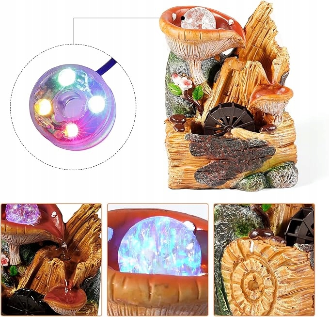 Красочные светодиодные светильники подчеркивают красоту текущей воды, создавая волшебное настроение в комнате.