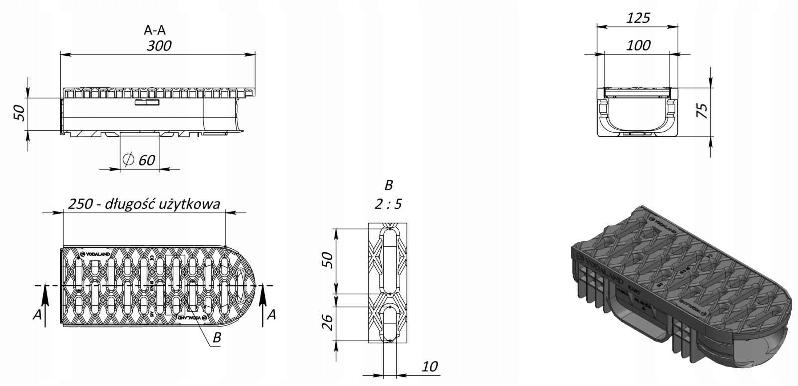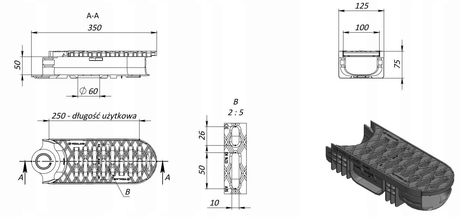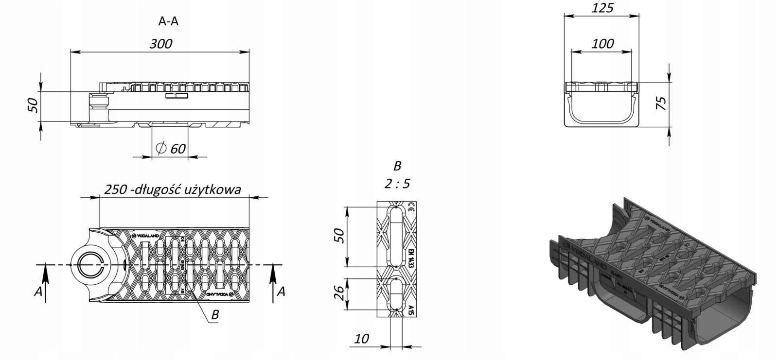 - Возможность комбинирования с другими элементами серии Easy2, аксессуарами (например, сливным патрубком, заглушками) - все для создания полноценной дренажной системы.