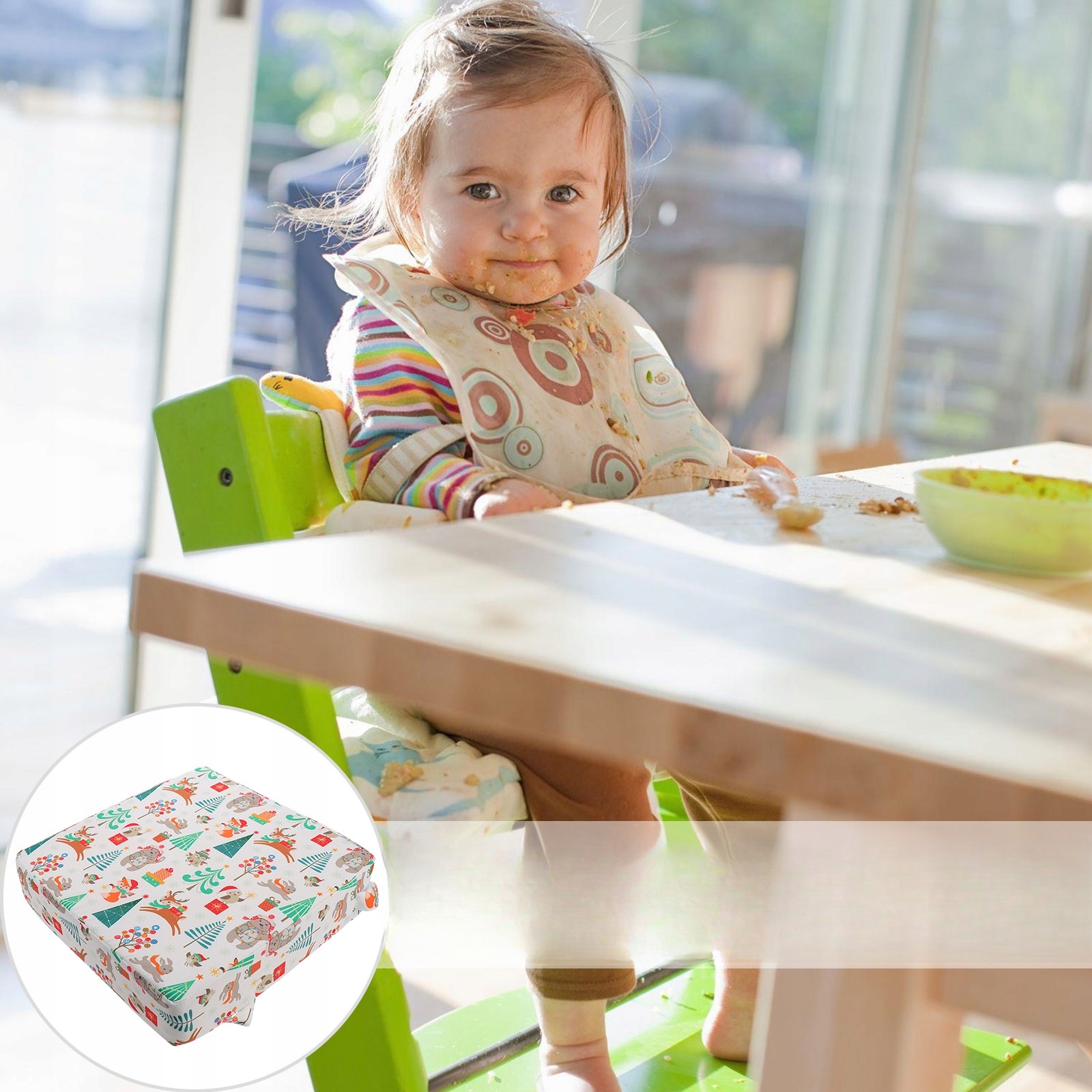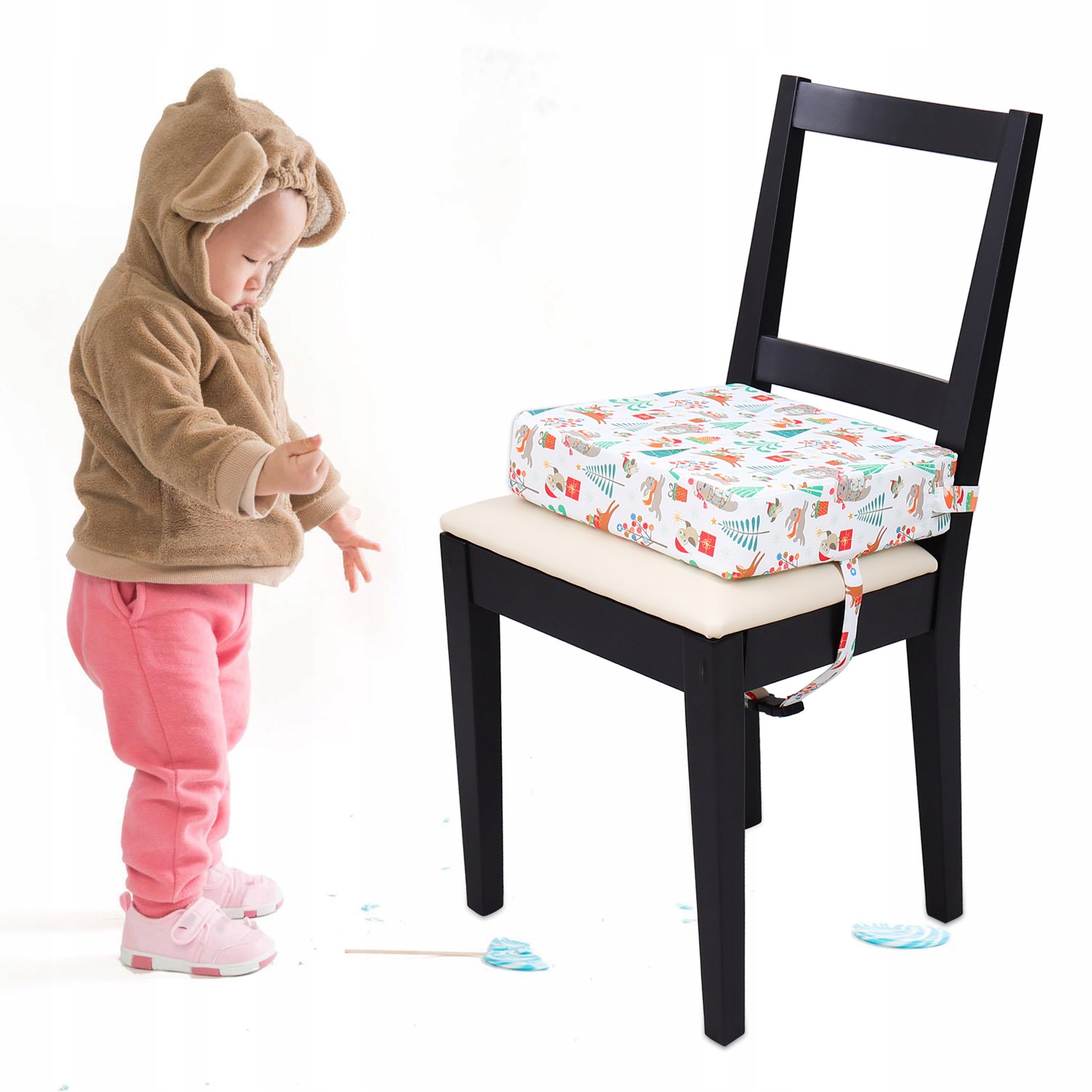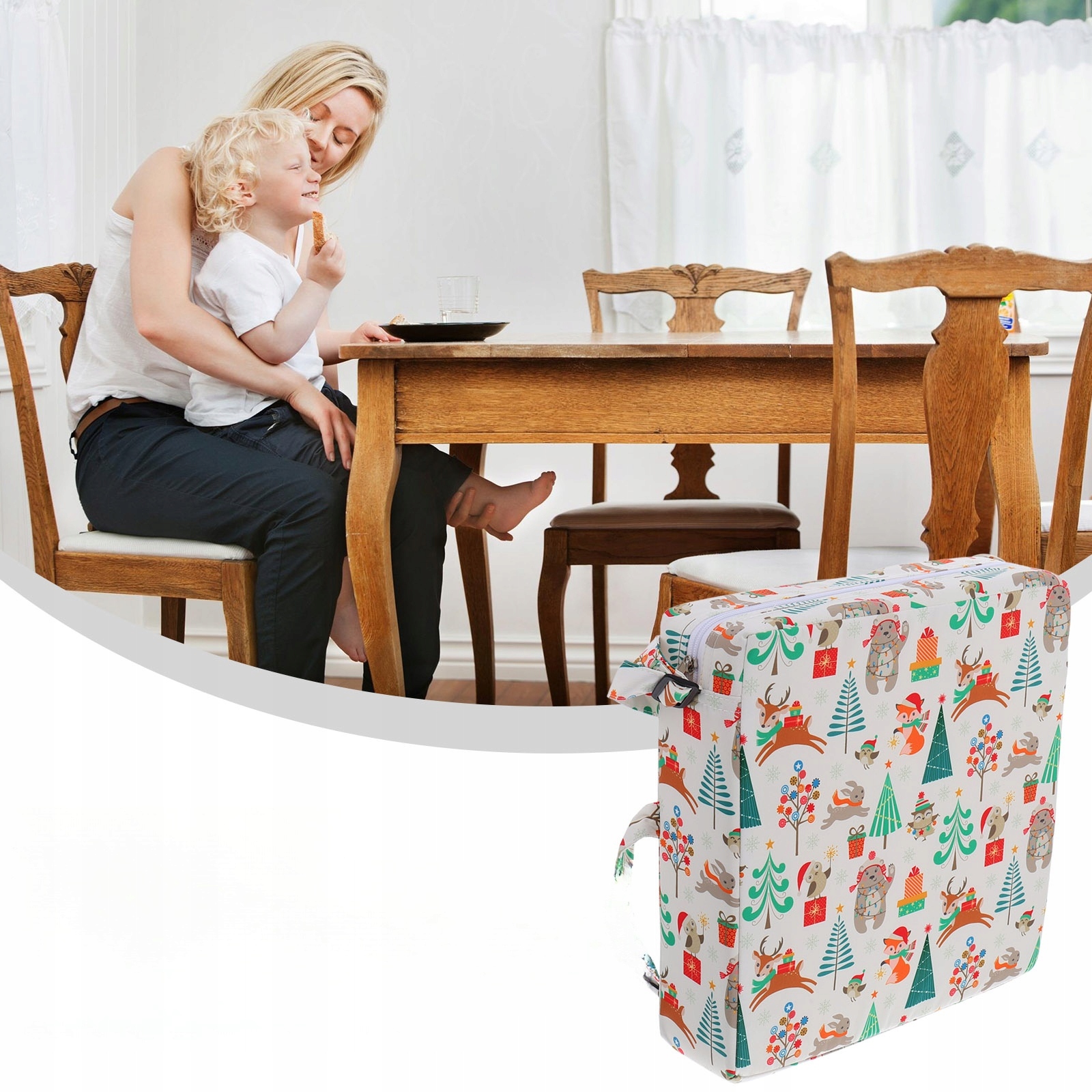 ✅Наше сиденье-подставка для стола подходит для большинства обеденных стульев, младенцы и дети могут сидеть перед столом и наслаждаться едой вместе со своими родителями. Это очень удобное сиденье-подушка из полиэстера с симпатичным чехлом с рождественским тематическим рисунком. Оно очень прочное и удобное, чтобы ваши дети могли наслаждаться едой.