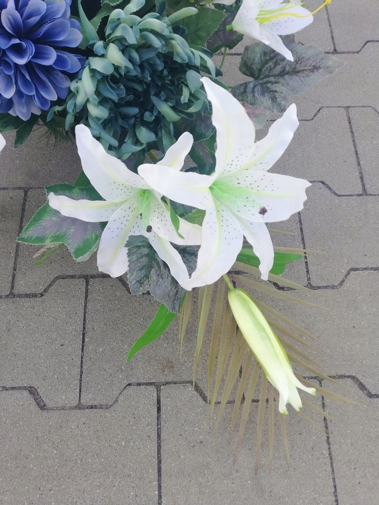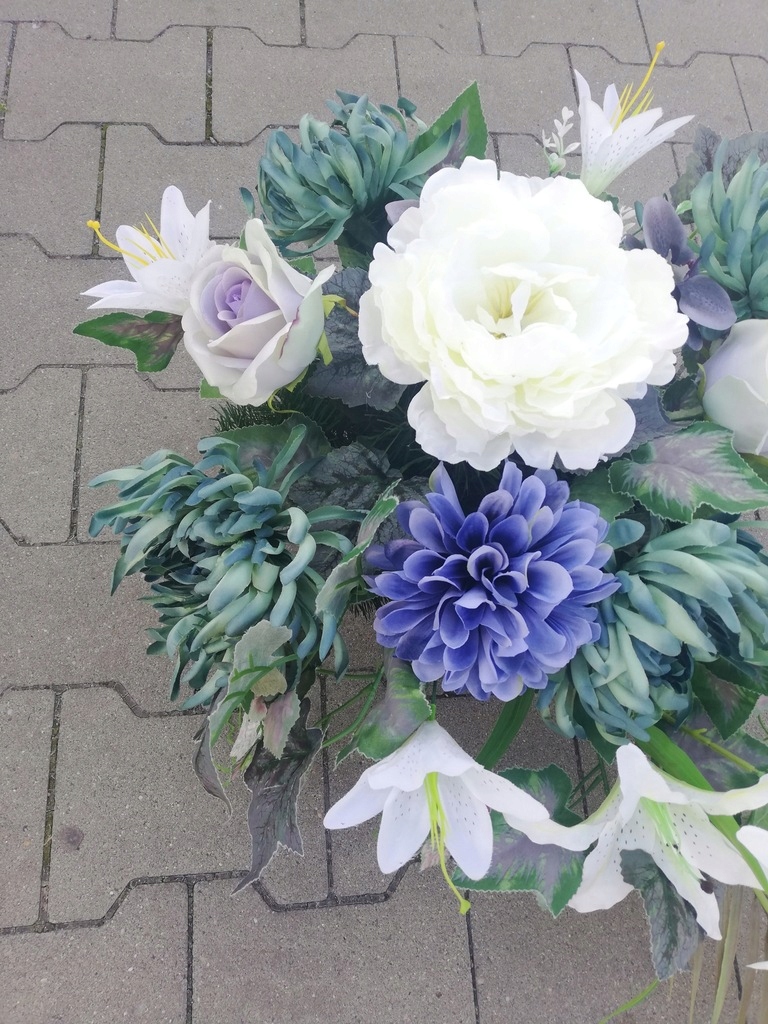 Цветочная композиция на могилу была тщательно составлена с использованием модных цветов и очень качественных материалов, а также загружена искусственными цветами.