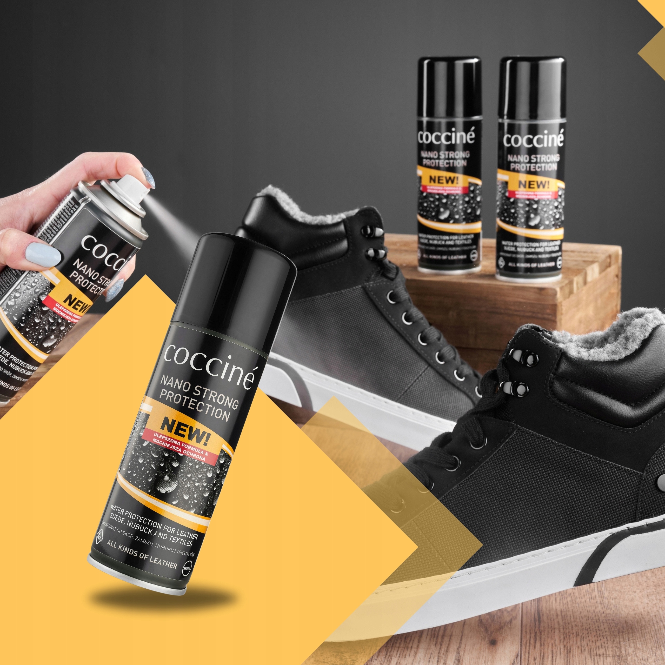 Защитите свою обувь, одежду и аксессуары от дождя и грязи! Coccine Nano Protector Strong 230 мл — это надежная, современная защита, которой можно доверять — независимо от погоды.