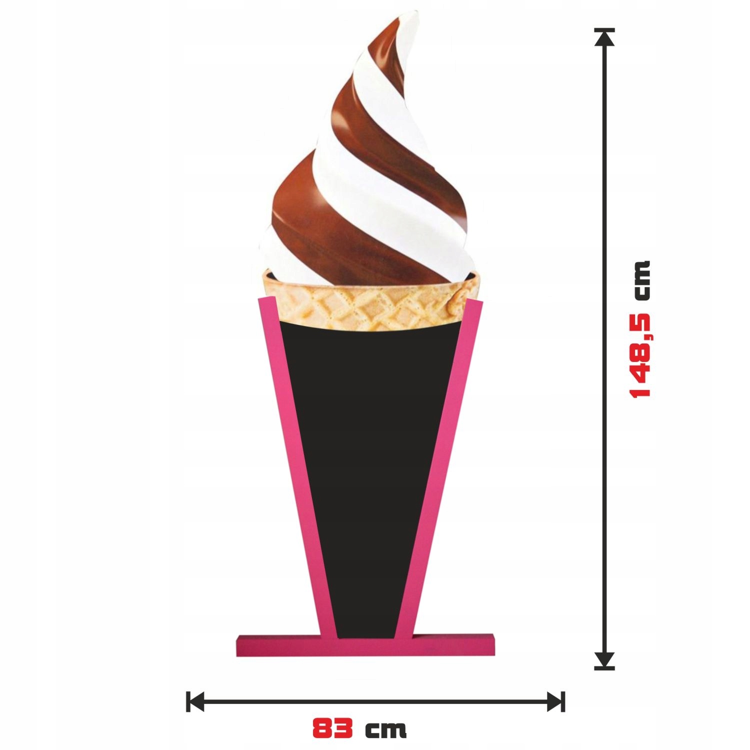 С одной стороны доски расположены доска с графикой в виде мороженого и черная доска для письма мелом. Черное поле на доске — это меловая доска. Доски для письма изготавливаются из досок ABS из пластика (пластика), характеризующегося высокой твердостью, гибкостью, малым весом и устойчивостью к царапинам. На них можно писать мелом или меловым маркером. Это позволяет легко мыть или вытирать содержимое и быстро менять его в зависимости от ваших потребностей. Для этого типа доски рекомендуется использовать маркеры с повышенной устойчивостью к дождю и снегу. Написанные на доске таблички можно легко и быстро мыть слегка влажной тряпкой. С помощью доски вы сможете рекламировать дешевле и эффективнее, поскольку сможете изменить свое предложение в любой момент.