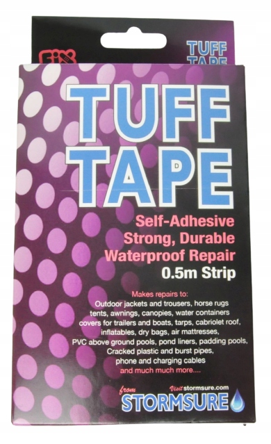 Stormsure «TUFF TAPE» — это серия специальных самоклеящихся пластырей различных форм и размеров. Они характеризуются очень прочной, прозрачной, водонепроницаемой структурой материала.