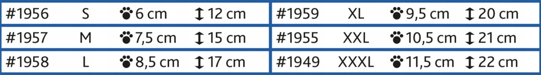 Если размер лапы вашего питомца находится между двумя размерами или на ней есть повязка, используйте следующий больший размер. Благодаря регулируемым застежкам их можно идеально подогнать по лапе.