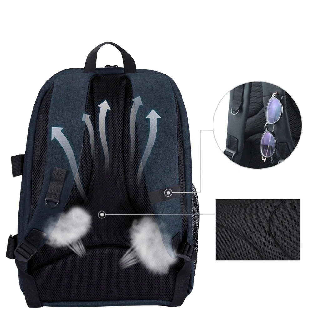 Рюкзак очень просторный: помимо камеры и специальных аксессуаров в него также можно положить 15,6-дюймовый ноутбук, бутылку с водой, планшет, газету, мобильный телефон. телефон, солнцезащитные очки, небольшое полотенце, зонтик и косметика. Рюкзак имеет порт для внешнего кабеля наушников.
