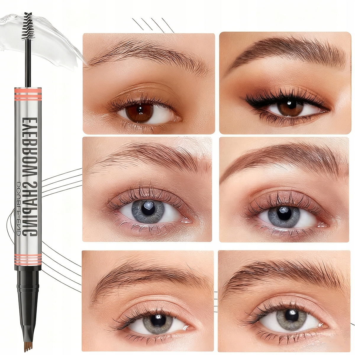 ✨【Двойная головка】Инновационная двойная головка: одна насадка предназначена для бровей, а другая оснащена гелем для моделирования бровей. Это позволяет точно определить форму бровей и сохранить ее надолго. Карандаш для макияжа для идеальных бровей, которые держатся весь день.