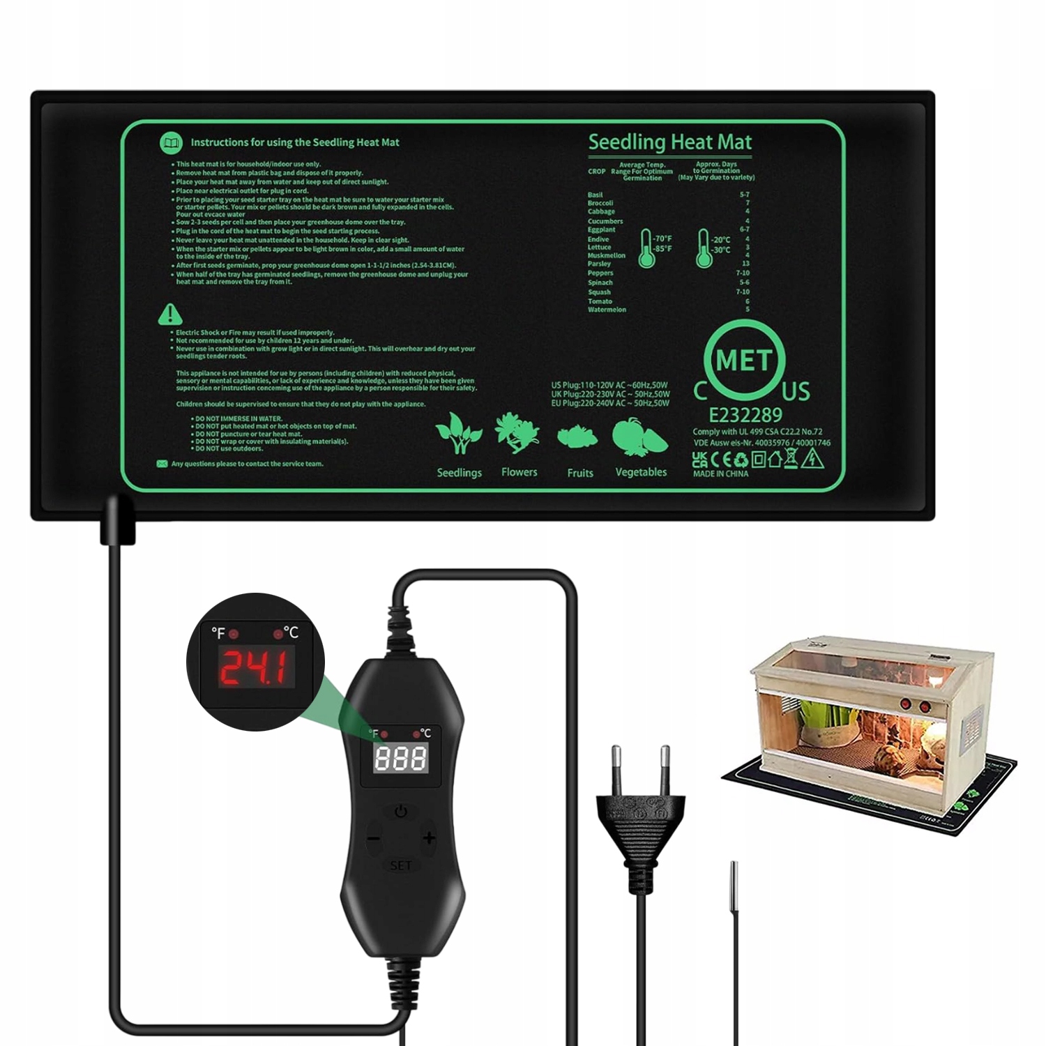 ⭐Контроль температуры: возможность устанавливать температуру от 20°C до 30°C делает коврик идеальным для различных растений и стадий роста. Пользователь может регулировать температуру в соответствии со своими потребностями, что обеспечивает оптимальные условия для растений и рептилий.