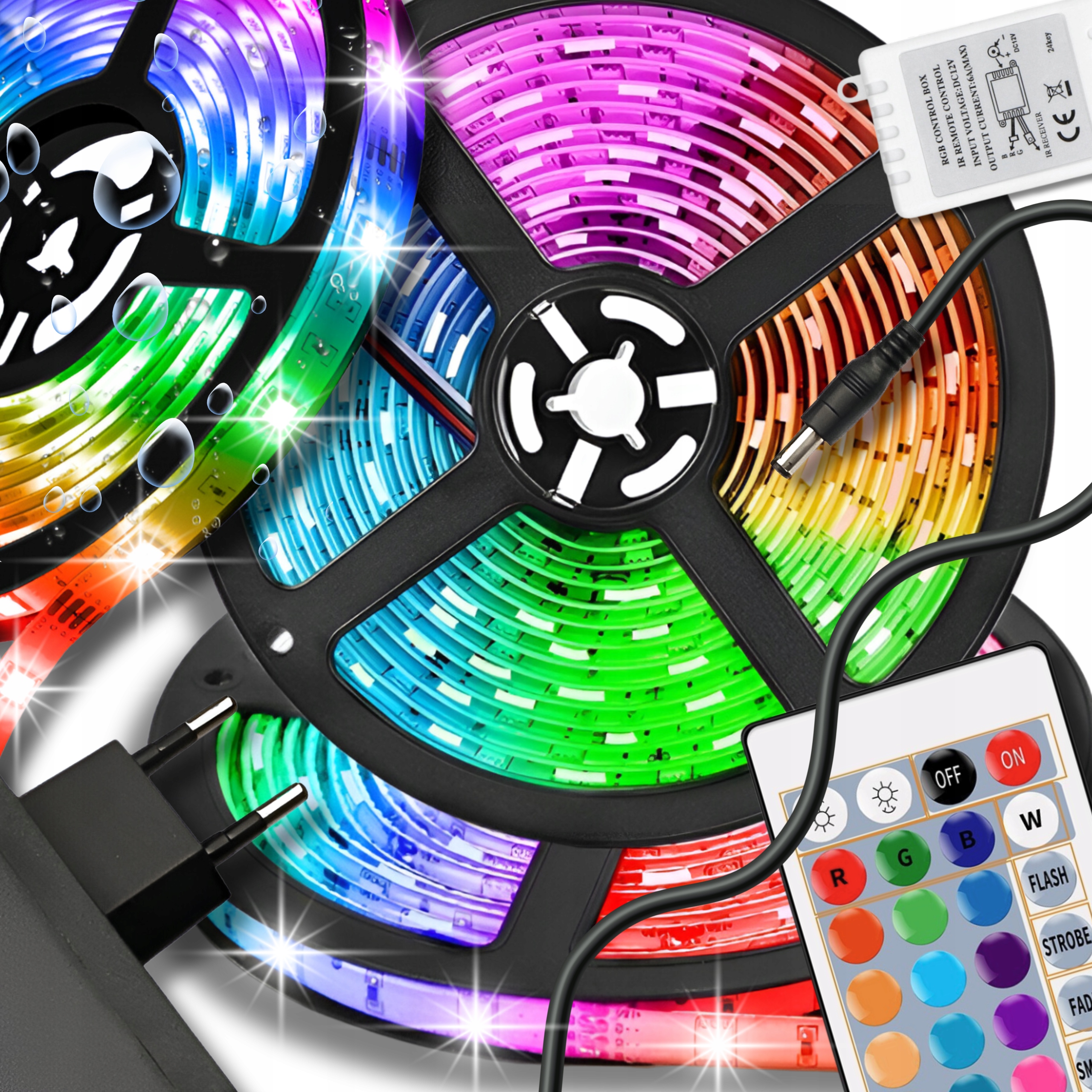 ВОДОСТІЙКИЙ КОЛЬОРОВИЙ СВІТЛОДІОД 3528 SMD ВОДОСТІЙКИЙ RGB LED СТРІЧКА 5 м З ПУЛЬТОМ