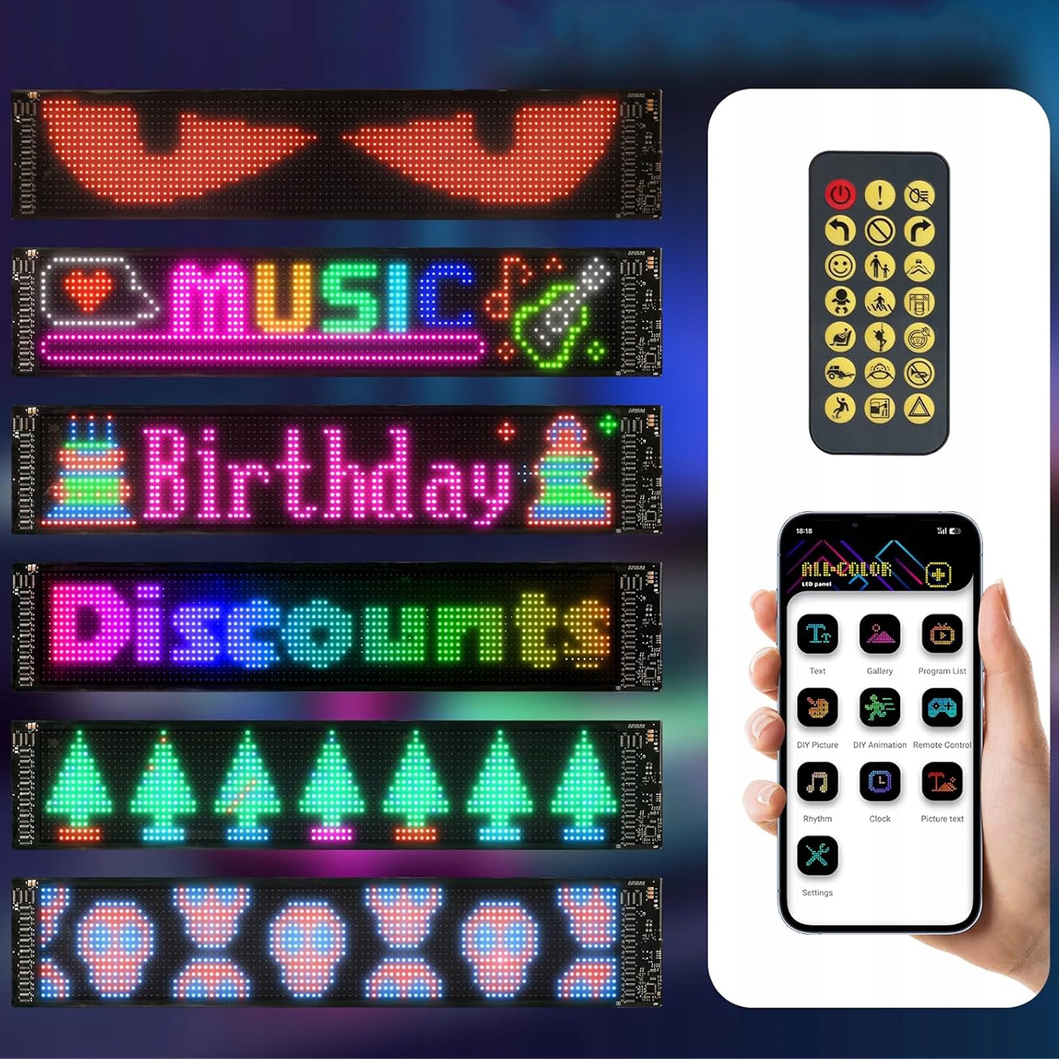 - Превратите свой автомобиль или пространство в динамичный визуальный опыт с помощью расширенных приложений и возможностей персонализации нашего гибкого светодиодного дисплея. Этот интеллектуальный дисплей, оснащенный 1536 полноцветными шариками RGB (разрешение 16x96), позволяет выбирать из предварительно загруженных привлекательных узоров, включая «Глаза демона» для автомобилей, или создавать уникальные анимации/тексты с помощью интуитивно понятного мобильного приложения. Независимо от того, выражаете ли вы свой личный стиль или рекламируете бренд, сверхтонкий экран размером 12 x 59 см предлагает непревзойденную гибкость и безграничные творческие возможности, что делает его идеальным для автолюбителей, предприятий и декораторов мероприятий.