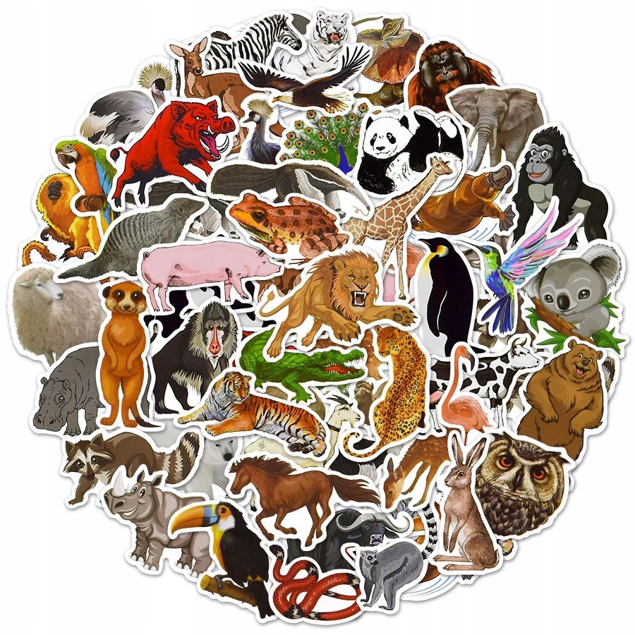 ВОДОСТІЙКИЙ НАБІР СТИКЕРІВ МІКС ТВАРИНИ 50 шт