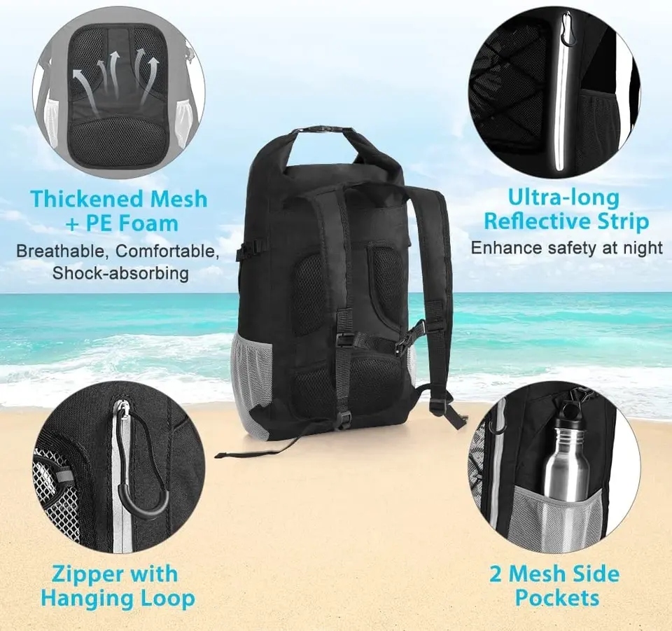 - Раздельный карман между влажной и Сухие: Сухие рюкзаки премиум-класса оснащены изолированным карманом на молнии, который позволяет хранить влажные вещи отдельно, защищая тем самым внутренние сухие вещи от намокания. Кроме того, молния дополнена светоотражающей полосой, которая может улучшить видимость и безопасность в ночное время