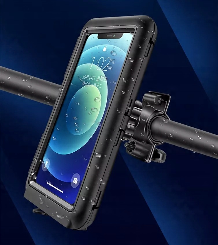 Водонепроницаемый держатель для телефона имеет закрытую конструкцию, что делает его более безопасным, чем большинство держателей, доступных на рынке. Обеспечивает водонепроницаемость IPX6 для полной защиты телефона от брызг, дождя, снега, грязи и пыли. Он имеет уникальную систему регулировки винтового крепления и устойчив к ударам. Чехол защищает телефон от падения.