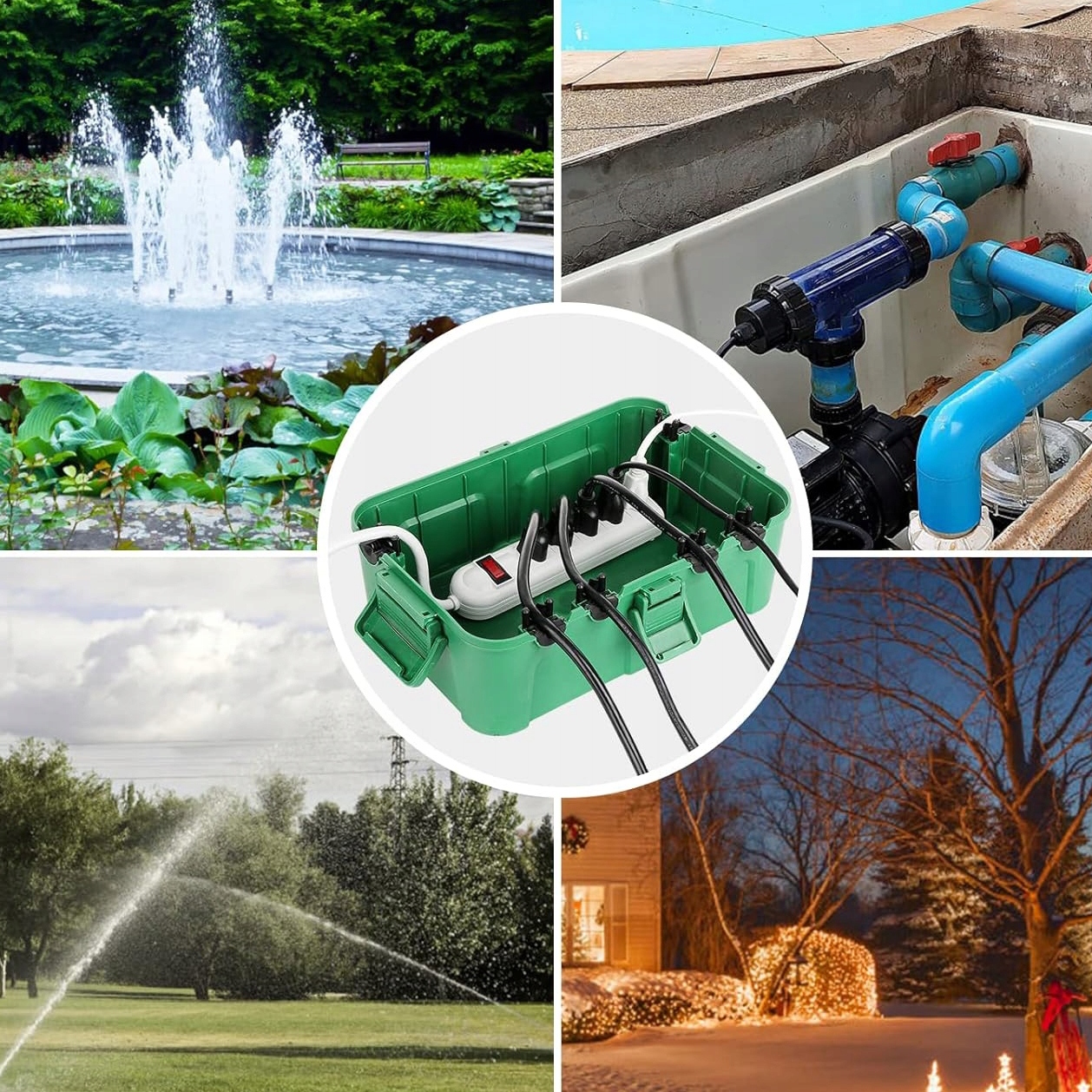 Защитная коробка подходит как для коммерческого, так и для профессионального использования. Его можно использовать в садоводстве, прудах, садовом освещении и бассейнах. Подходит для внутреннего и наружного использования. В нем можно легко разместить различные типы кабелей, таймеры, удлинители и радиоприемники.