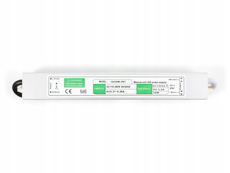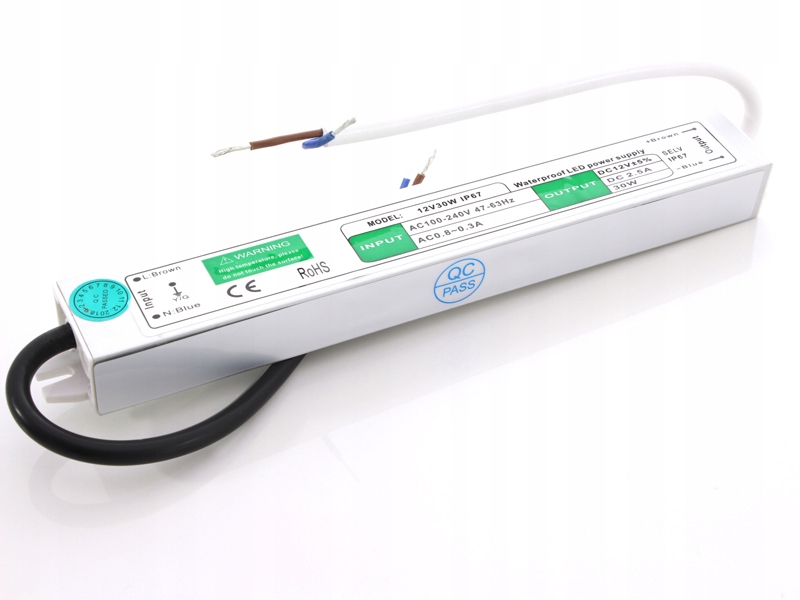 Водонепроницаемый внешний источник питания для светодиодной ленты мощностью 30 Вт.