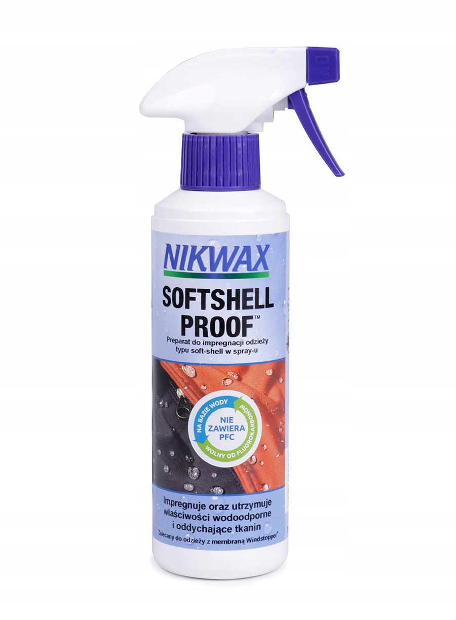 Ткани софтшелл сочетают в себе желаемые качества. свойства традиционной одежды и водонепроницаемого флиса повышают комфорт пользователя и обеспечивают защиту в большинстве погодных условий. Софтшелл дышащий и эластичный, но в то же время очень гидрофобный и защищает от ветра. Такая одежда адаптируется к телу владельца, позволяет влаге выходить, в то же время не промокает и защищает от холодного ветра. Softshell представляет собой универсальный внешний слой, способный выдержать большинство погодных условий. Чтобы сохранить водоотталкивающие и воздухопроницаемые свойства, необходимо обеспечить сохранение прочного водоотталкивающего покрытия (DWR). Nikwax SoftShell Proof был специально разработан для сохранения максимальных эксплуатационных характеристик тканей softshell.
