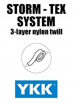 СИСТЕМА STORM-TEX - 3-х слойная нейлоновая саржевая ткань с системой STORM-TEX (мембрана) обеспечивает отличную водонепроницаемость (10 000 мм) и высокую воздухопроницаемость (8 000 г/м2/24ч)