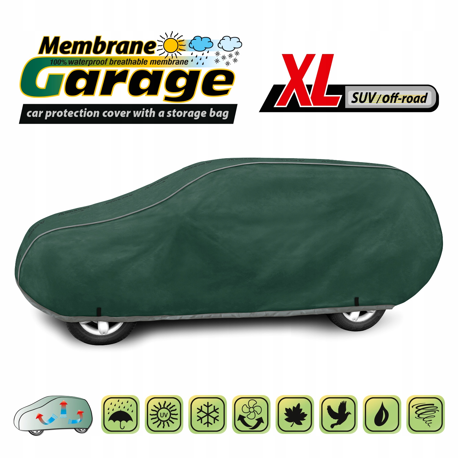 Чехол защищает весь автомобиль, включая нижние части, от неблагоприятного воздействия окружающей среды.