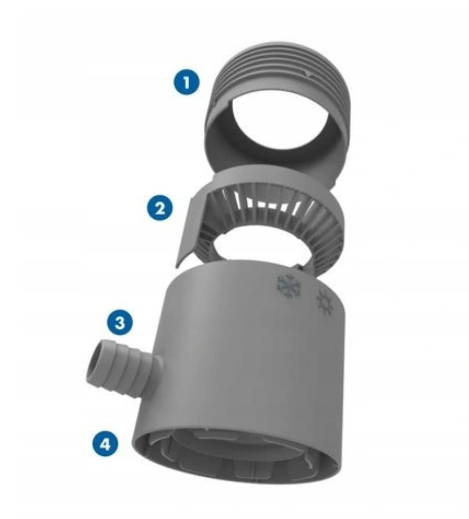 Универсальные коллекторы, подходят для труб диаметром 53-75 мм и труб из любого материала, то есть как пластика, так и металла. Коллекторы могут быть установлены на существующую установку без необходимости демонтажа трубы. Коллектор имеет встроенный фильтр. Коллектор имеет настройку лето/зима путем поворота купола. Зимняя настройка отключает подачу воды в бак.