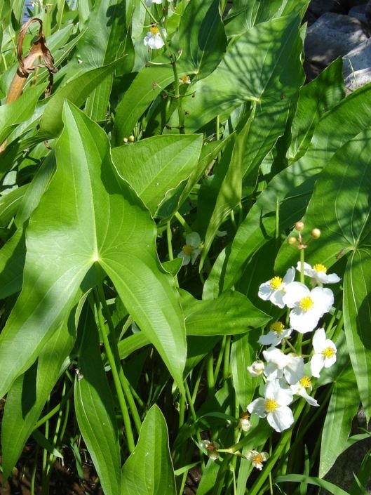 Частично погруженное водное многолетнее растение из семейства Асцидовые. Требует воды глубиной до 15 см, но переносит и немного более глубокие места. Светло-зеленые, стреловидные листья вырастают до 60 см. Цветки белые, трехлепестковые с желтыми центрами и большего диаметра. до 3,5 см. Они появляются в июле-августе. После цветения растение украшают крупные, колючие, привлекательные плодовые головки. Он распространяется по подводным столонам, быстро образуя большие скопления. Маранты — привлекательные декоративные растения для маленьких и больших прудов.
