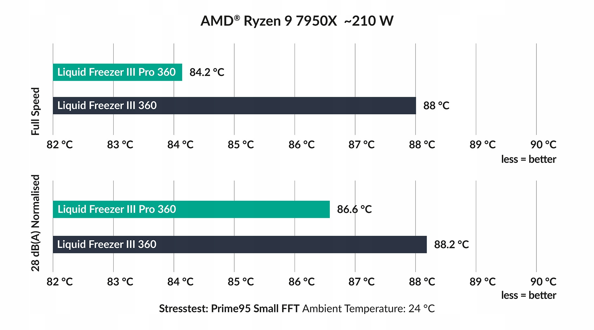 Производительность является ключом. Три вентилятора Arctic P12 Pro со скоростью до 3000 об / мин и давлением 6,9 ммх2, гарантируют впечатляющий воздушный поток и эффективное охлаждение, даже при приостановке. Разнообразие толщиной 38 мм содержит больше жидкости, чем стандартные конструкции, что приводит к лучшему тепловому рассеиванию и более низкому накоплению температуры.
