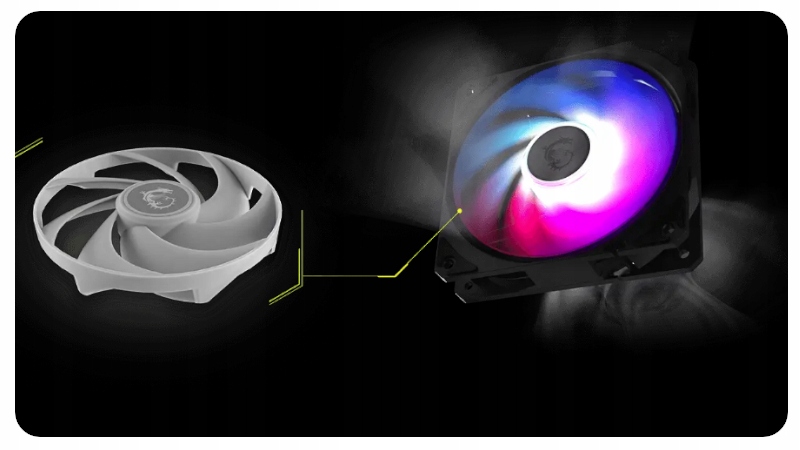 ⭐cicloblade 7 из MSI - это вентилятор с гибридной структурой лезвия, благодаря которого были обеспечены мощный воздушный поток и высокое статическое давление. Таким образом, экстремальная производительность системы охлаждения была гарантирована даже в интенсивные часы игр, сохраняя при этом низкий уровень шума.