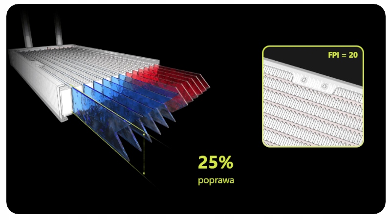⭐ ⭐ ⭐ ⭐ fpiwikor fpi, указывающий количество ребер на дюйм (от плавников на дюйм), достигает впечатляющего значения 20 в радиаторе. Такое большое количество ребер также увеличивает охлаждающую поверхность, благодаря которой не только значительно повышенная эффективность охлаждения, но также гарантировали стабильный, эффективный тепловой разряд в условиях высокой нагрузки или разгона.
