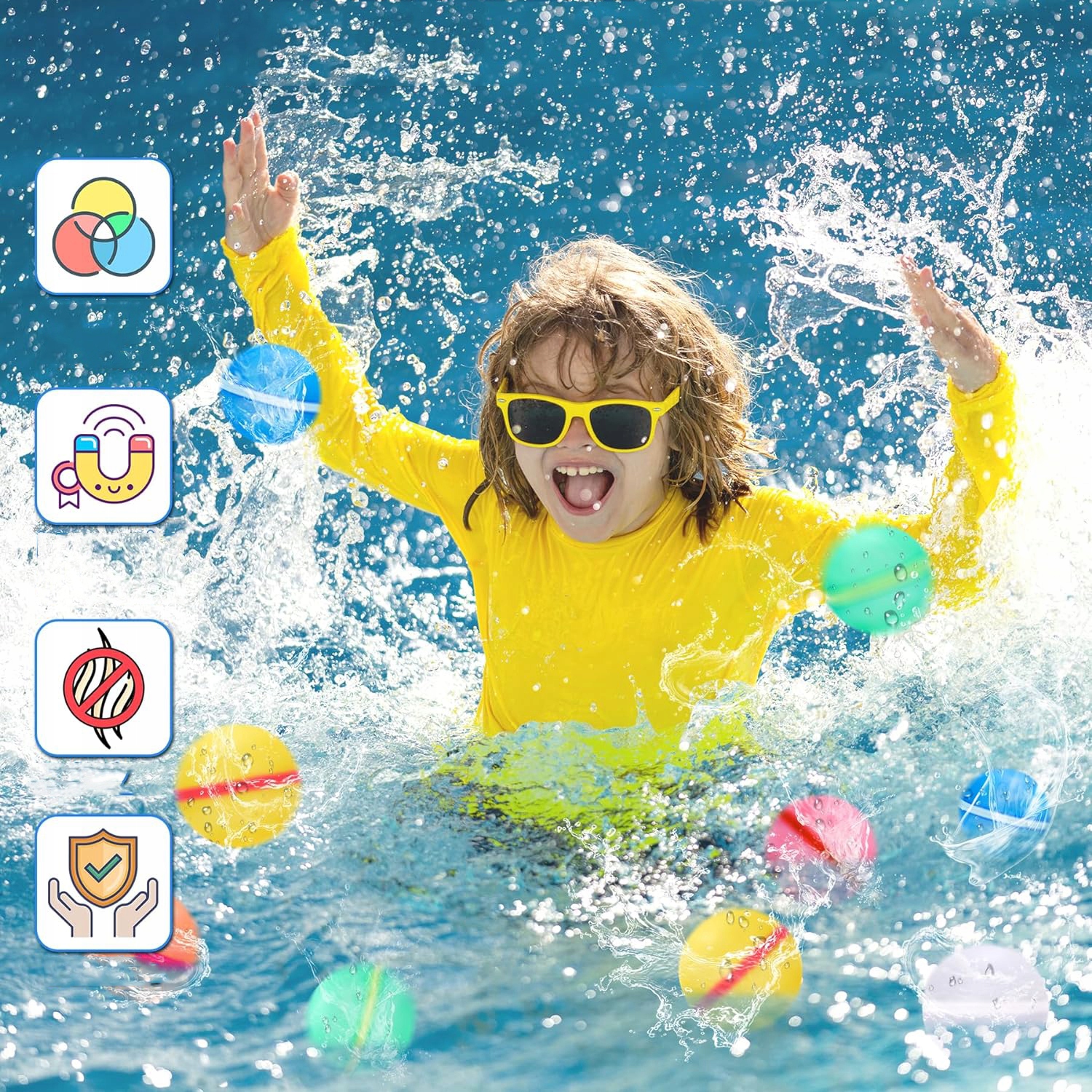 🎁🎁🎁 Широкий спектр применения:уникальная технология самозапечатывания и высококачественный силиконовый материал. Эти магнитные водяные бомбы делают их многоразовыми и удобными в ношении. Подходит для вечеринок у бассейна, дорожных игр, активного отдыха. Его можно использовать в различных местах, таких как сады, задние дворы, лужайки, ванные комнаты и аквапарки. Красивый плеск каждого водного шарика подарит еще больше прекрасных воспоминаний вашим детям и семье.