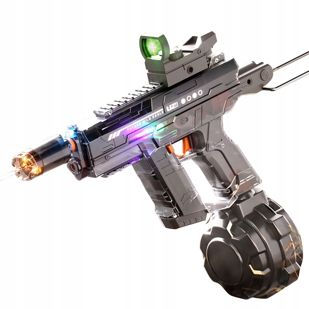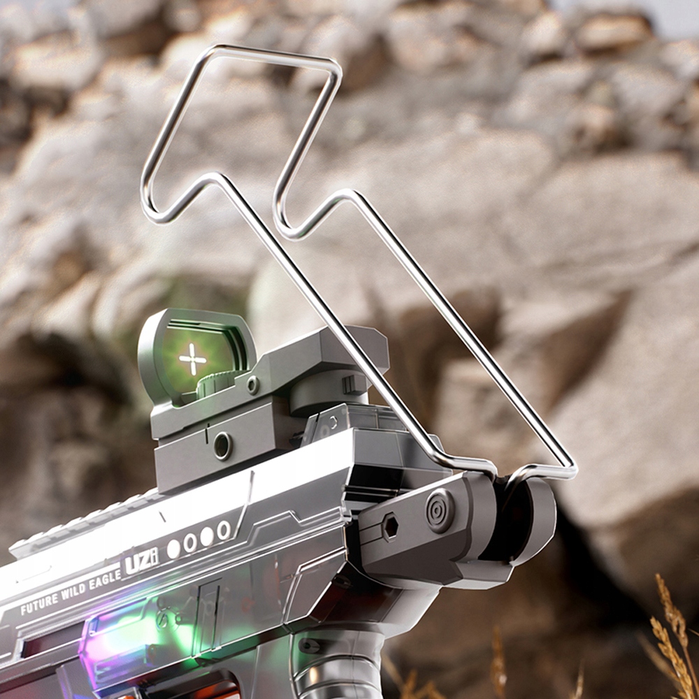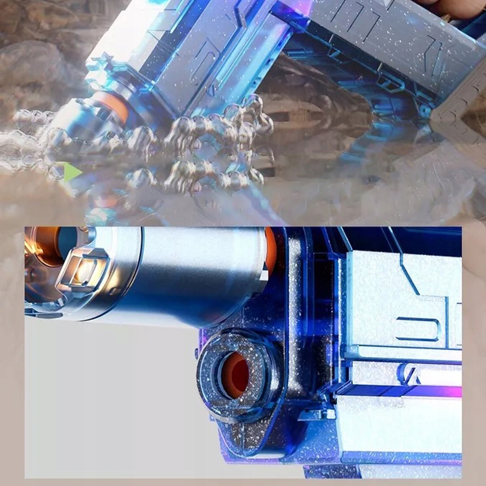 - 💦Этот электрический водяной пистолет имеет два светодиодных фонаря на корпусе пистолета, а с аксессуарами-вспышками свет синхронизируется с потоком воды, благодаря чему каждый выстрел сияет.