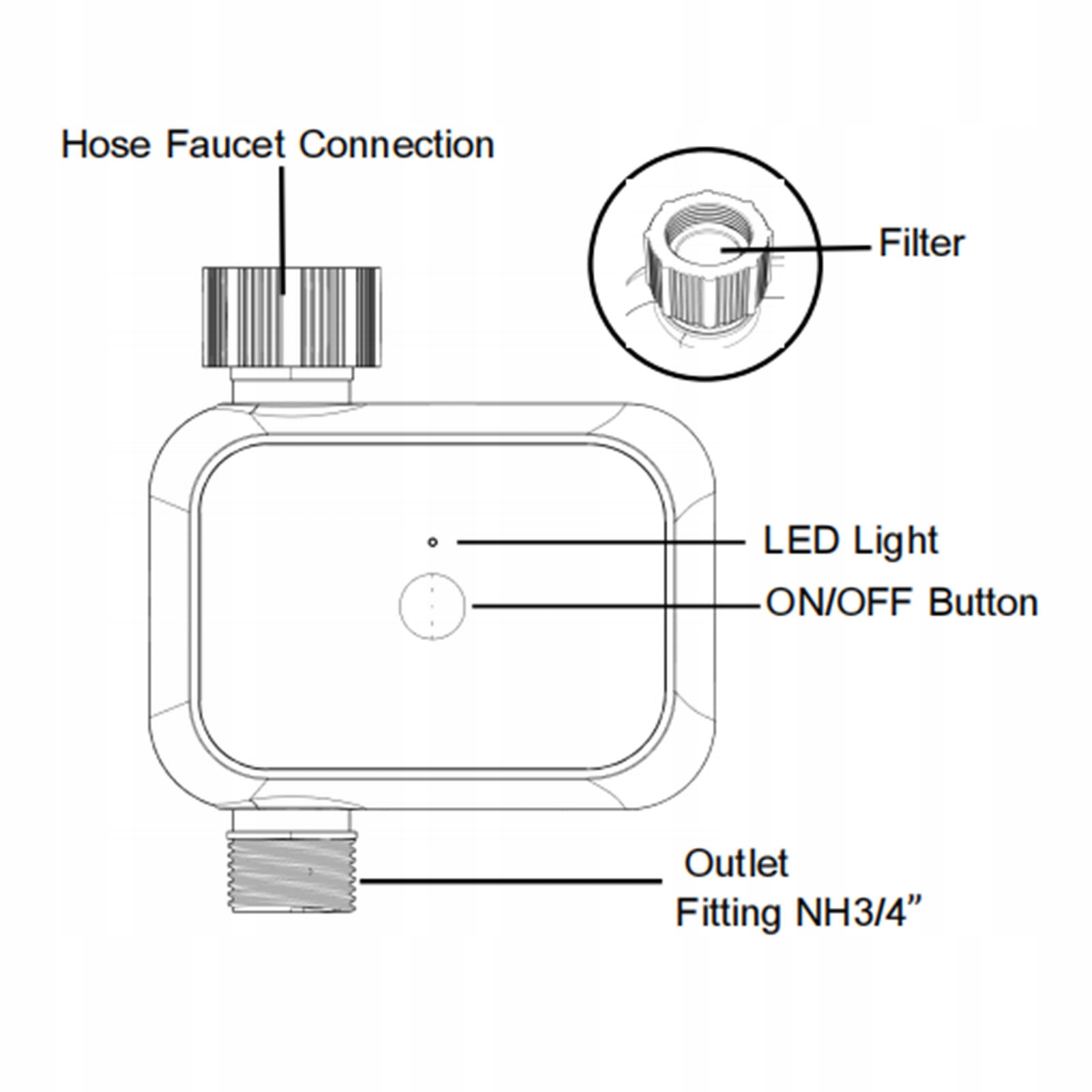 2. ФИЛЬТР: резьбовой интерфейс таймера разбрызгивателя Bluetooth с конструкцией фильтра, прост в использовании, не засоряется, увеличивает срок службы контроллера.
