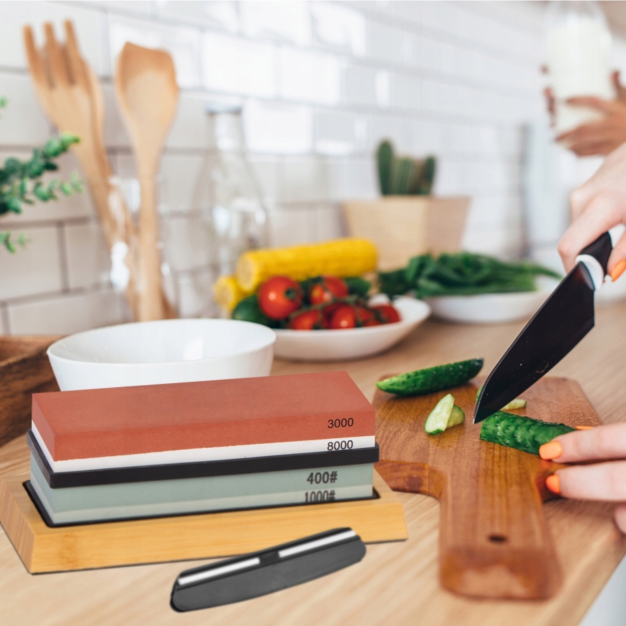 Набор корундовых точильных камней – один из наиболее эффективных способов заточки и полировки края тупых лезвий. Они позволяют существенно ускорить и повысить качество заточки ножей на любой кухне. В набор входят 4 камня с разной зернистостью (400/1000/3000/8000). Набор можно использовать для заточки и сглаживания кромок ножей любого размера.