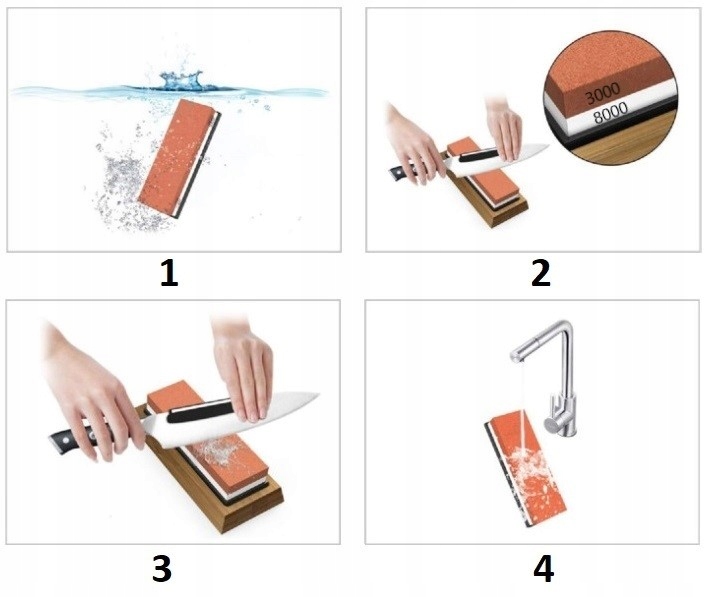 Для повышения эффективности шлифовальный камень необходимо использовать до того, как в процессе смачиваются оба камня (выглаживание и шлифование), а во время шлифовки поверхность точилки должна оставаться влажной.