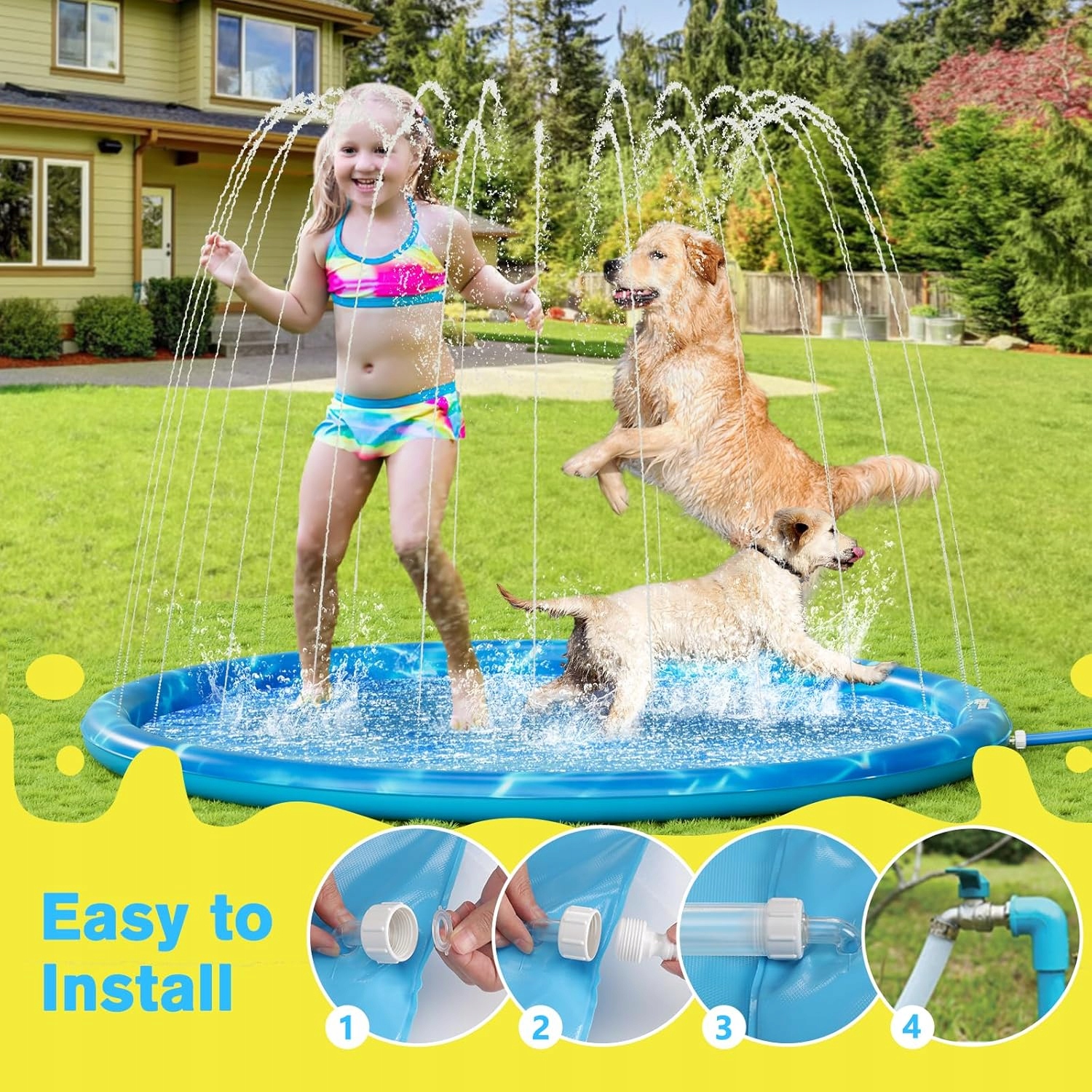 Бассейн для бассейна с водным ковром с разбрызгивателем для детей и собак для сада 170 см.