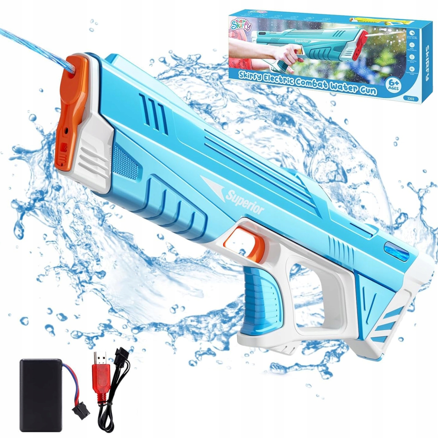 Вы ищете современный и впечатляющий водяной пистолет? Эта автоматическая водяная винтовка с батарейным питанием — настоящий хит праздничного веселья! Благодаря электрическому механизму наполнения и стрельбы дети и взрослые могут наслаждаться интенсивным водным боем, не прерывая веселья. Игра станет отличной идеей для того, чтобы охладиться в теплые дни во дворе, в бассейне, на пляже или во время летней вечеринки.