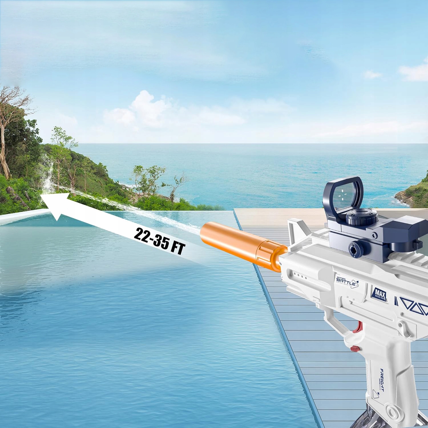 ☑️Автоматический водяной пистолет, управляемый одним касанием: Больше не нужно поглощать давление вручную благодаря стрельбе в одно касание из этого электрического водяного пистолета! При каждом нажатии на спусковой крючок с непревзойденной точностью выбрасывается один мощный водяной наконечник. В это захватывающее время года вы можете сыграть в захватывающую битву с водными пистолетами со своими друзьями или детьми!