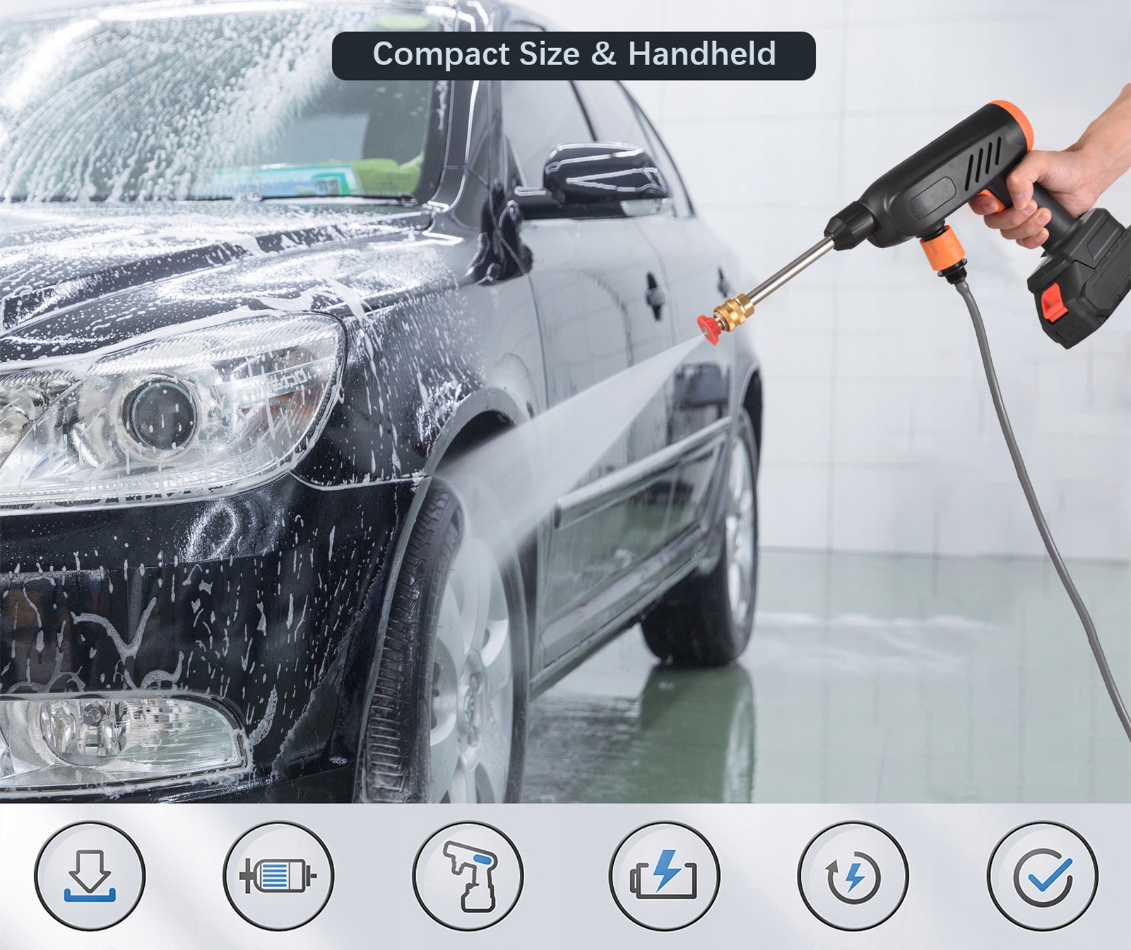 ▶ Многофункциональная мойка высокого давления: этот инструмент предназначен не только для мытья автомобиля, но и идеально подходит для мытья автомобиля, полива сада, орошения в сельском хозяйстве и ежедневной уборки.