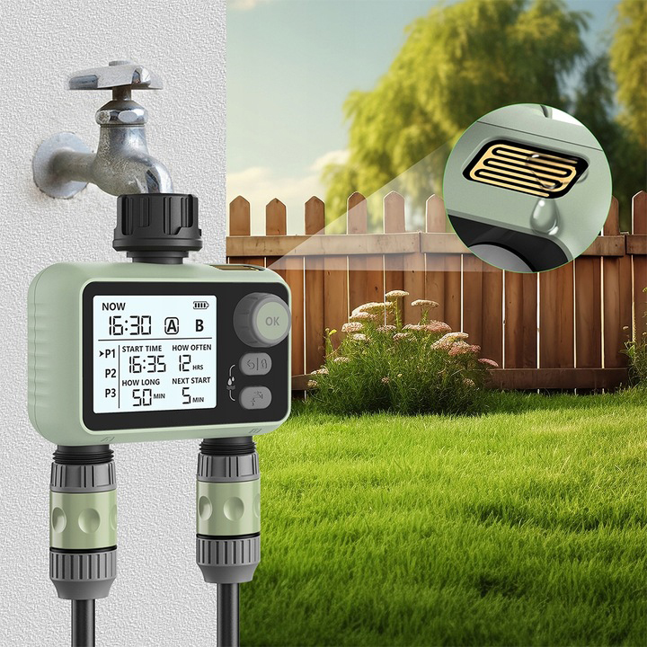 Создание полива в саду благодаря интеллектуальному контроллеру ирригации! Устройство обеспечивает точное управление графиком полива, экономя время и воду. Благодаря интуитивному контролю и прочной конструкции, это идеальное решение для газонов, участков, горшков и парниковых культур.