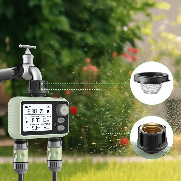 Возможность установить 3 отдельных программы для выбранного клапана (A или b), позволяет настроить полив до времени дня, типа растений и погодные условия. Это идеальное решение для людей, которые ценят комфорт, потому что это устраняет необходимость вручную включать воду, что экономит время и энергию. Отрегулируйте время полива до потребностей растений.