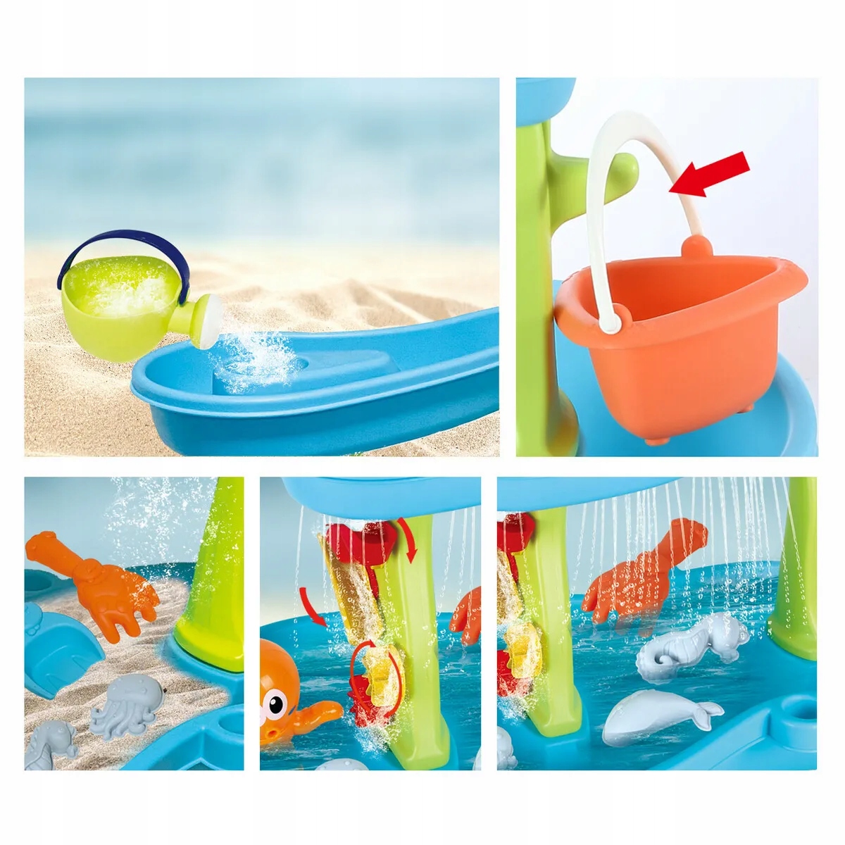 Идеально подходит для игры с водой и песком, выведет ваш задний двор на совершенно новый уровень. имеет целых 18 аксессуаров: , поливая банка, ведро, песочный контейнер, 3 формы, 2 лопатки, осьминог, водное колесо, водопад.
