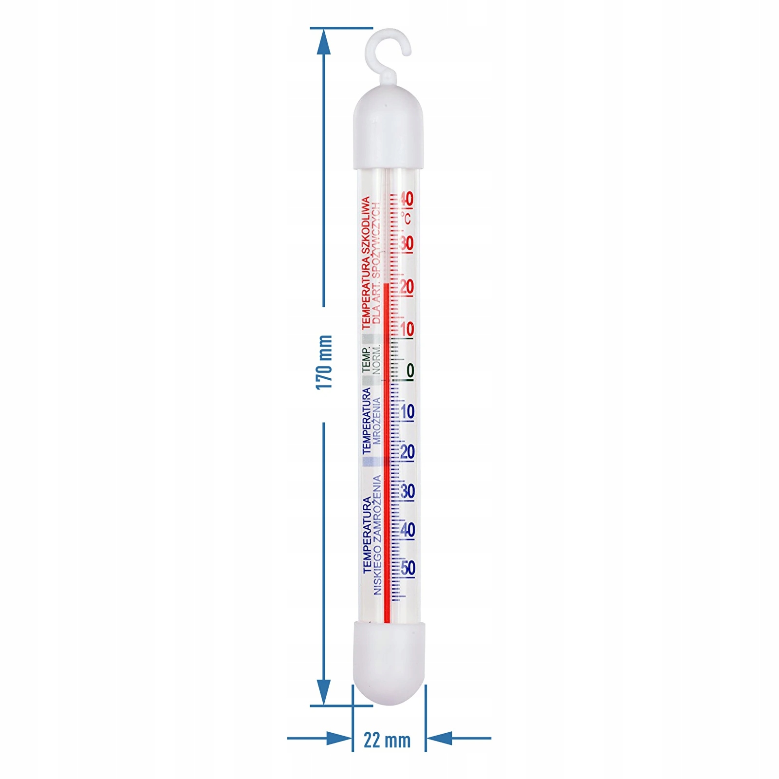 Термометр позволяет считывать от -50 ° C до +40 ° C, что обеспечивает точный мониторинг температуры в каждом холодильнике или морозильной камере. Точность измерения составляет +/- 1 ° C, что означает, что показания очень точные. Жидкий термометр был разработан для легкого и удобного использования. В верхней части термометра есть крючок (в форме крючка), позволяющий его подвеску. Жидкий термометр в белом корпусе является идеальным инструментом для каждого человека, который хочет быть уверенным, что температура в холодильнике или морозильной камере подходит для хранения пищи.