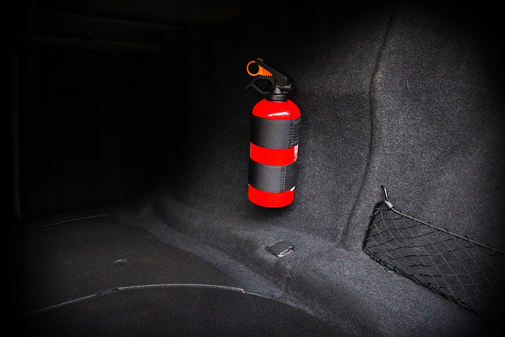 Благодаря нашему держателю вы можете безопасно перевозить огнетушитель в багажнике вашего автомобиля! Прочная липучка гарантирует, что огнетушитель надежно удерживается и не перемещается по багажнику!