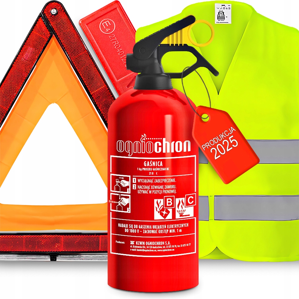 АВТОМОБИЛЬНЫЙ ПОРОШКОВЫЙ ОГНЕТУШИТЕЛЬ 1КГ, ПРЕДУПРЕЖДАЮЩИЙ ТРЕУГОЛЬНИК В ЖИЛЕТЕ