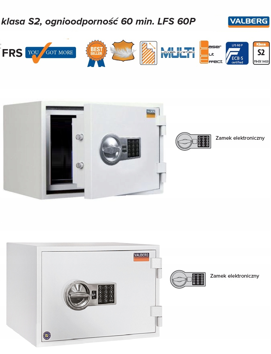 Сейфы FRS с сертификатом S2, огнестойкость 60 мин LF60P,