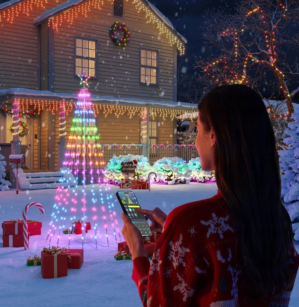 Рождественские гирлянды Govee в форме конуса, гирлянда длиной 1,8 м, 316 светодиодов, 82 режима
