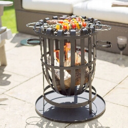 Эта модель также имеет функцию барбекю, благодаря хром, стальной решетке, которая может быть размещена на верхнем краю корзины. Очарование снабжена базой, направленным на ловушку пепла и остатки сгоревшего топлива, чтобы облегчить поддержание чистоты вокруг корзины.