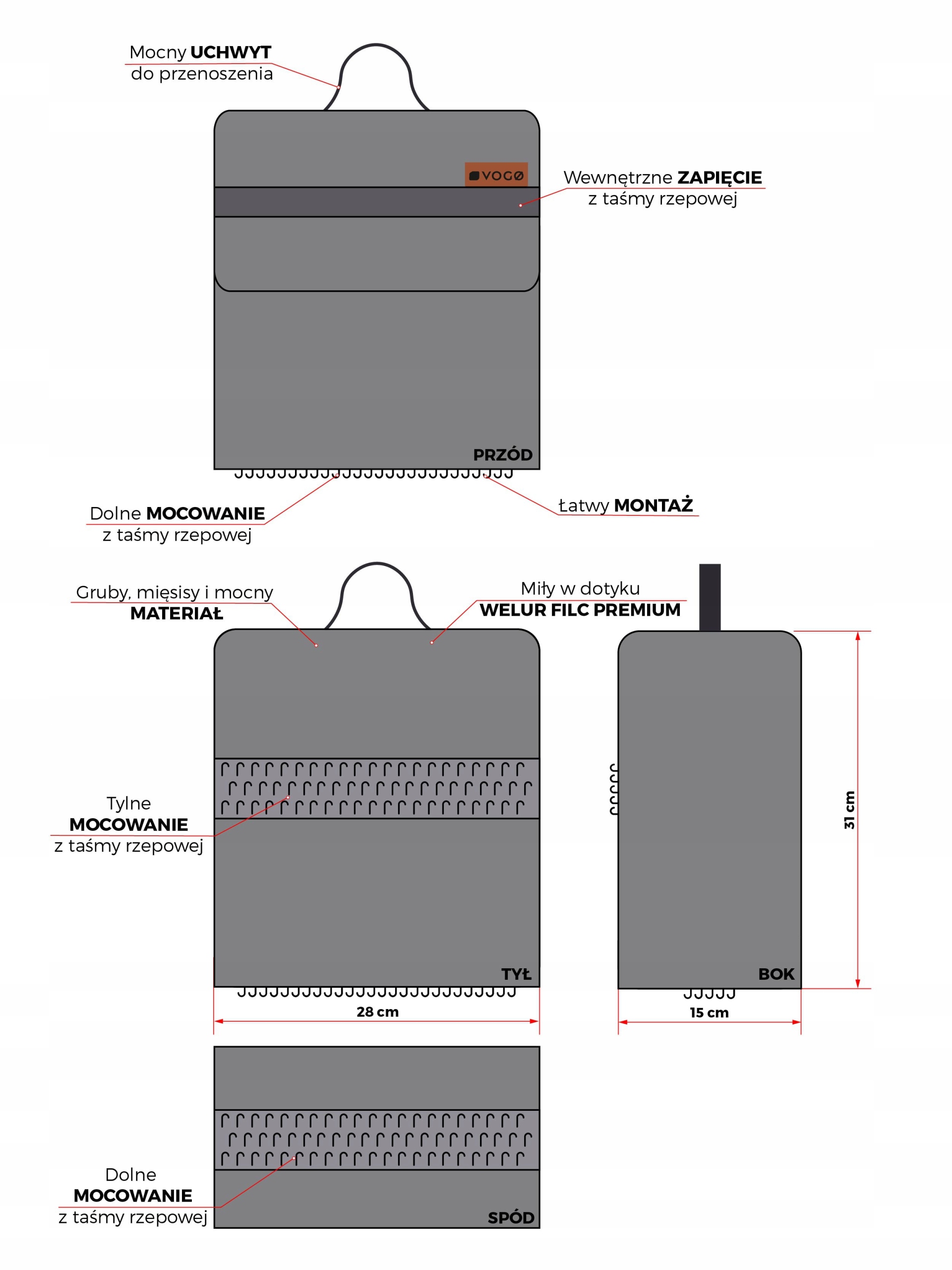 Практическая автомобильная сумка для хранения необходимых в путешествии аксессуаров, не помещающихся в традиционное отделение. На задней и нижней стенках сумки имеются липучки, которые стабилизируют сумку и предотвращают ее перемещение.