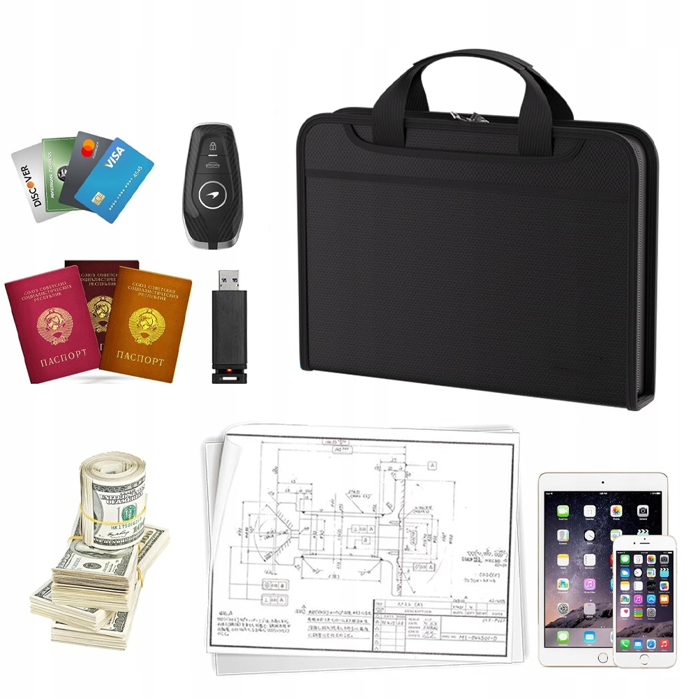 Водонепроницаемый: папка для хранения документов обладает высокой водонепроницаемостью и идеально подходит в случае случайного пролития жидкости или несчастного случая (края молнии не являются водонепроницаемыми). Наш огнестойкий органайзер для документов обеспечит легкий доступ и упорядоченность ваших документов.