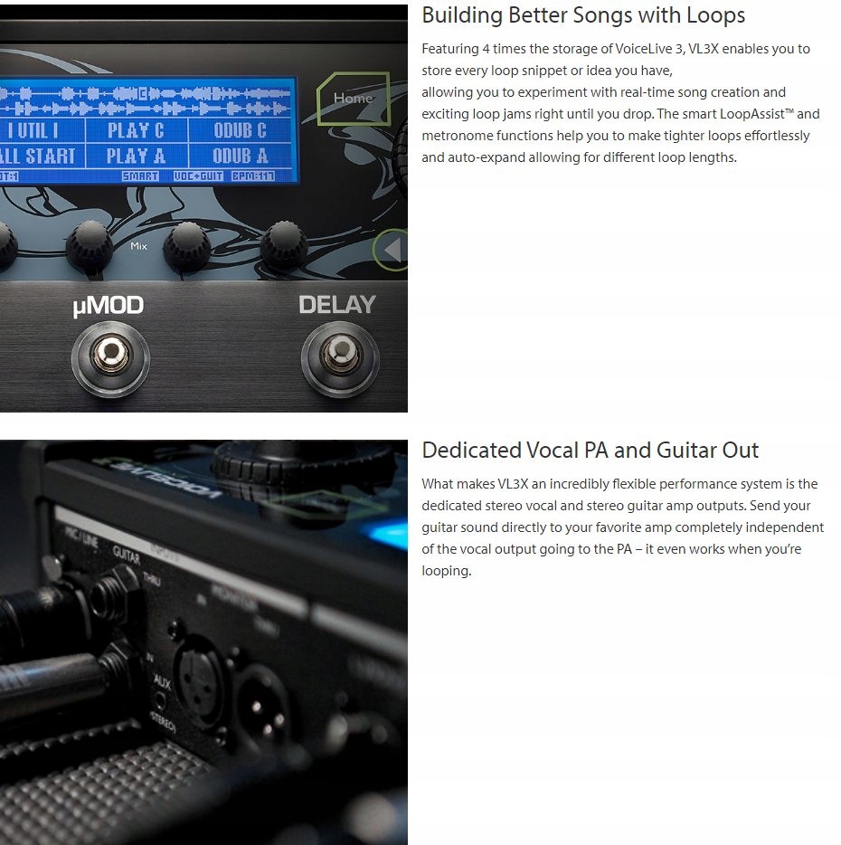 voicelive 3 Extreme также является интуитивно понятной многопрофильной петлей с возможностью записи бесконечного числа наложений, ассистент Loopassist предоставит вам контроль над петлей, предоставляя метроном, Quantizer и MIDI для идеального синхронизации Loopy, а также создать длинные петли от Shorter и Vice Vers. Вы можете сохранить устройство в памяти до 50 петлей, каждый с длиной до 8 минут