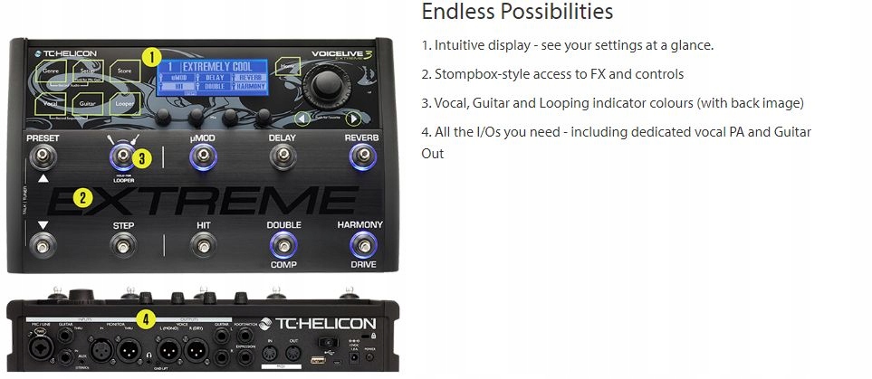 tc helicon voicelive 3 extreme -a Профессиональный процессор и вокал-гитарический мультифт. Изучите качество быстро и без проблем с широким спектром профессиональных вокальных эффектов